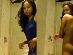 Desi babe strips down to her lingerie in the bathroom