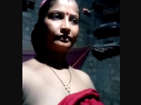 Indian desi woman slowly removes clothing to reveal XXX-rated breasts, masturbates