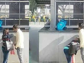 Outdoor video of a slender Indian girl giving her boyfriend a blowjob