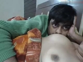 Pretty Indian babe gives a titjob to her lover