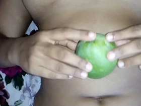 Desi babe puts mango in pussy and cums hard