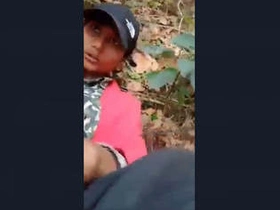 Cute girl gives oral and has sex with her boyfriend in the jungle