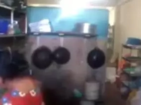 Horny daughter gets fucked in the kitchen by her stepfather