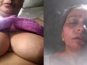 Fatty auntie flaunts her big boobs in videocall