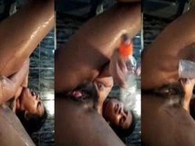 Horny bitch gets her pussy fucked with a bottle in MMS video