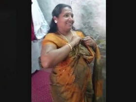 Busty Indian babe flaunts her navel in a saree