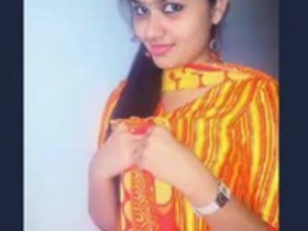 Cute Tamil girl registers her boobs with her lover