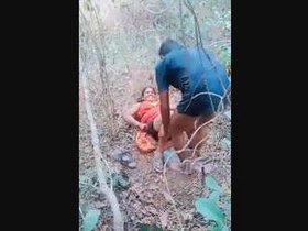 Older Indian woman has sex with younger man in the countryside