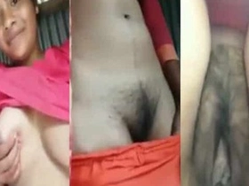 Desi girl masturbates and shows her boobs and pussy in a village setting