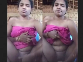 Watch a slim girl from a village show off her cute pussy in a nude MMS video