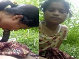A country girl pleases her lover with a sensual blowjob in the open air