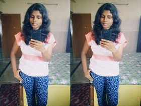 Exclusive video of cute Tamil girl revealing her breasts and pussy