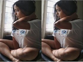 Exclusive video of cute Indian girl masturbating with her boobs on display