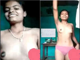 Exclusive video of a cute Indian girl showing off her boobs and pussy