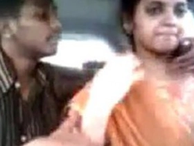 A Tamil man kisses and fondles the breasts of a pretty Asian girl in a car