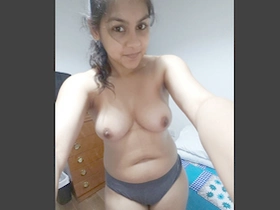 Busty Indian wife pleasures herself with her fingers in a self-made video