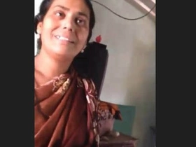 Mature aunty from village flaunts her big boobs in video call