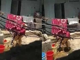 Aunty washes her pussy while wearing only red panties