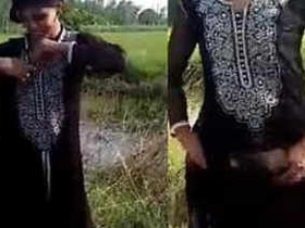 Indian girl flaunts her big breasts and pussy in outdoor video