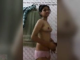 A young Indian college student flaunts her breasts in a video
