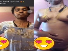 A shy Tamil girl reveals her breasts to her partner via video call