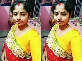 A lovely Indian girl displays her beautiful breasts