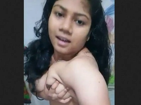 Watch a Tamil girl flaunt her large breasts and pussy in a steamy video