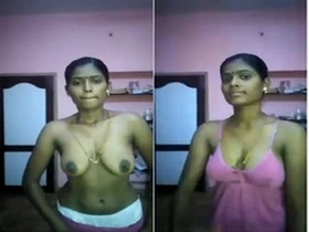A Tamil woman from the South of India flaunts her breasts in front of her boyfriend