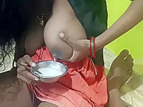 Dehati bhabi's boob show and milking in kitchen video MMS