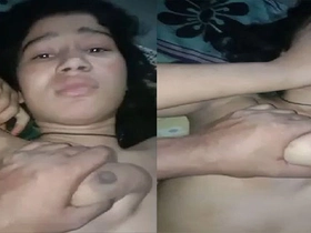 A young Indian girl gets her pussy and tits pleasured in a video call