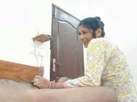 Indian wife gives her husband a blowjob in bed