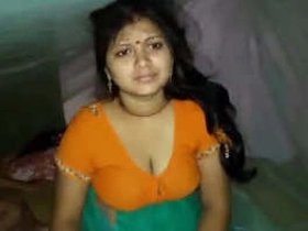 Anna, the cute one, wears a sexy orange sari in a live video
