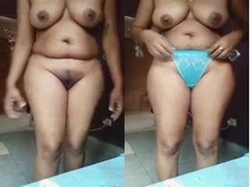 Tamil girl flaunts her huge boobs and shaved pussy