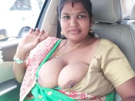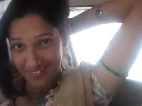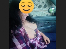 Desi babe bares her breasts in a car