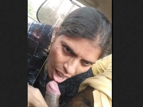 Desi aunty in a sexy outfit gives a blowjob and gets fucked in a car