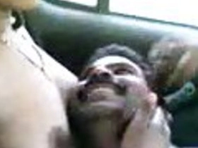 Desi couple enjoys boob sucking in car