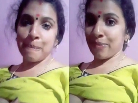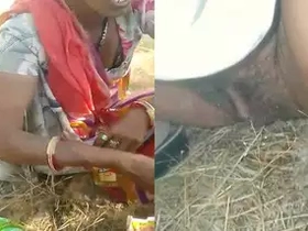 Desi bhabi reveals her large breasts in a village setting