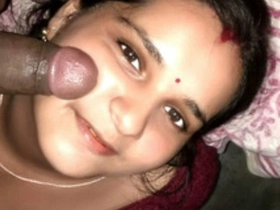 Indian bhabhi gives a blowjob to her husband for a camera