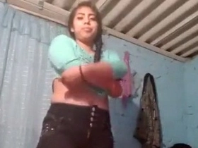 Exclusive cute desi girl strips down to her panties and teases with her boobs