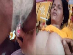 Mature Indian aunty pleasures herself with fingering and moans about her big breasts
