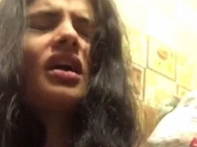 Brunette Indian girl plays with her hairy pussy in solo webcam video