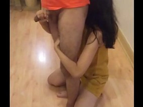 Amateur Indian babe Desi gives a handjob and blowjob to her lover
