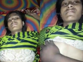 Indian wife's big tits squeezed by husband