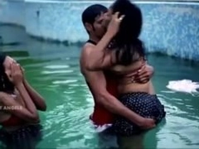 Husband and wife share a threesome with their friend in the pool
