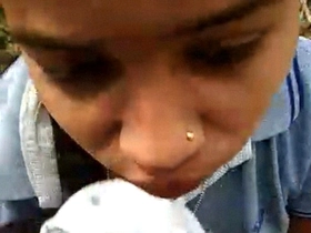 Desi teenager gives outdoor blowjob in public
